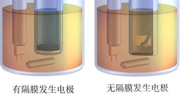 5、庫(kù)侖法發(fā)生電極:分為有隔膜發(fā)生電極和無(wú)隔膜發(fā)生電極,如下圖所示: